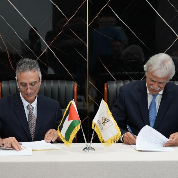 وجرى توقيع المذكرة بين رئيس المكتبة الوطنية الفلسطينية الوزير أ. د. مروان عورتاني ورئيس جامعة القدس أ. د. حنا عبد النور، بحضور أ. د عماد أبو كشك، ومدير مكتبات جامعة القدس أ. خليل جاموس، ومدير المعهد العالي للآثار في الجامعة أ.د. صلاح الهودلية، والمديرة السابقة للمكتبات في الجامعة وعضو مجلس إدارة المكتبة الوطنية الأستاذة رندة كمال، في مقر المكتبة الوطنية بمدينة رام الله.